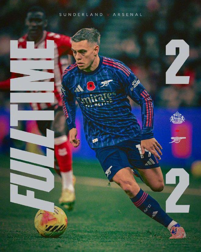 2025年11月09日 10连胜终结!阿森纳2-2遭桑德兰补时绝平 萨卡破门特罗萨德世界波